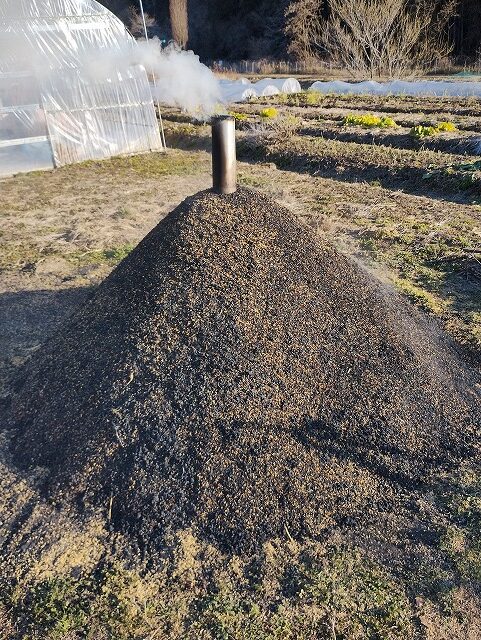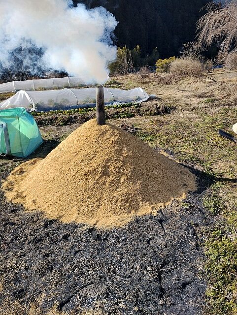 もみ殻燻炭できるまで工程写真を貼り付けます。