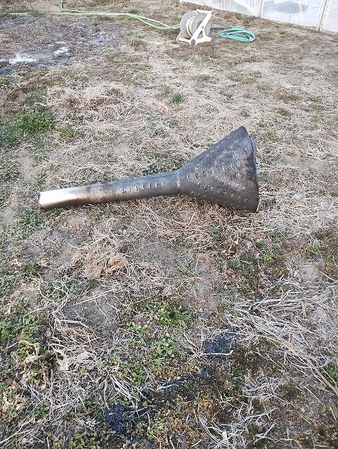 煙突周りに火が立ちはじめたら、スコップでもみ殻を下から上にかけていきます。