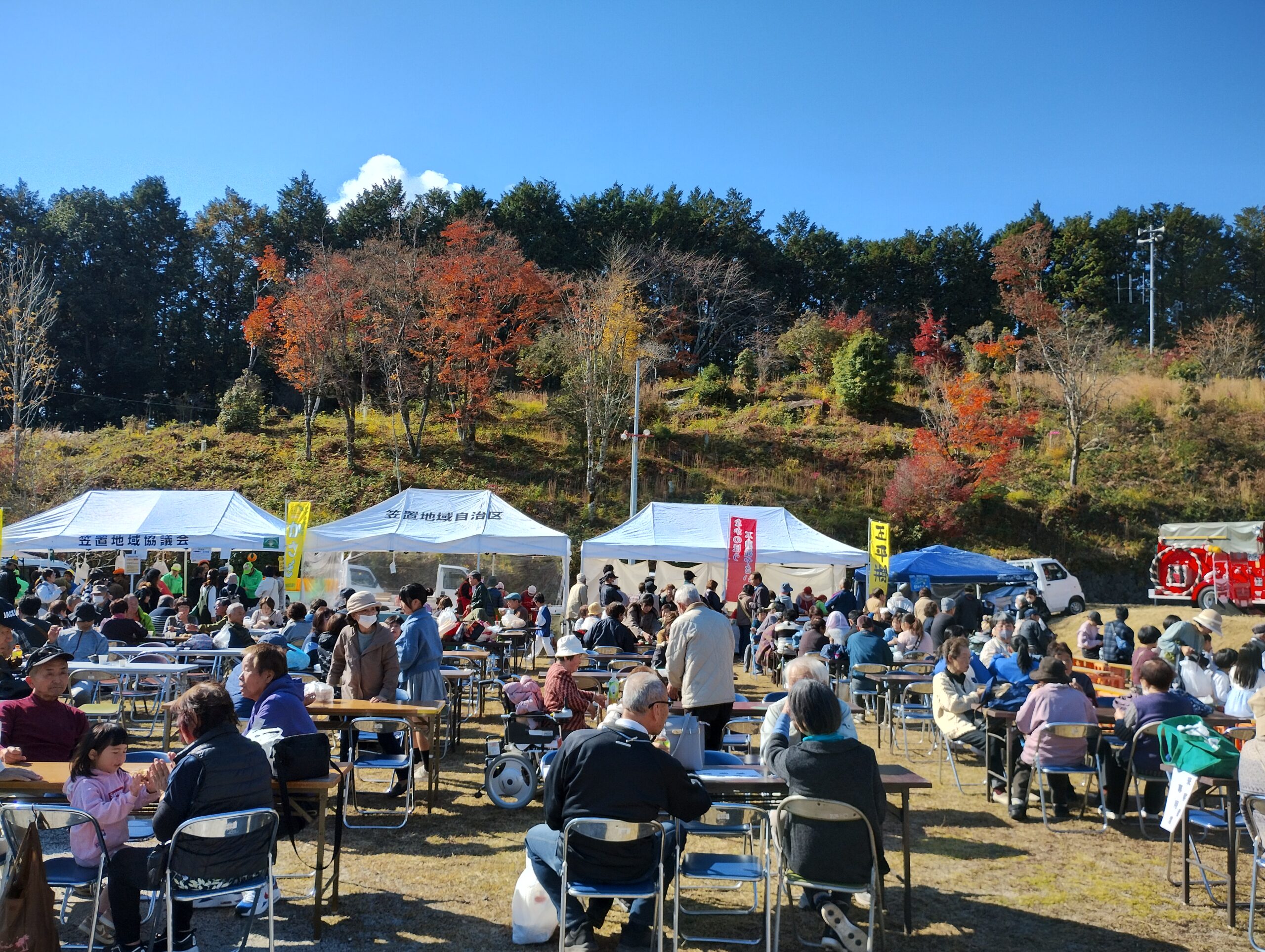 我が家から車で20分ほど、今年は笠置町内の体育館駐車場会場でしたが、多くの方がお目当てのゆずや屋台に集まっていました。