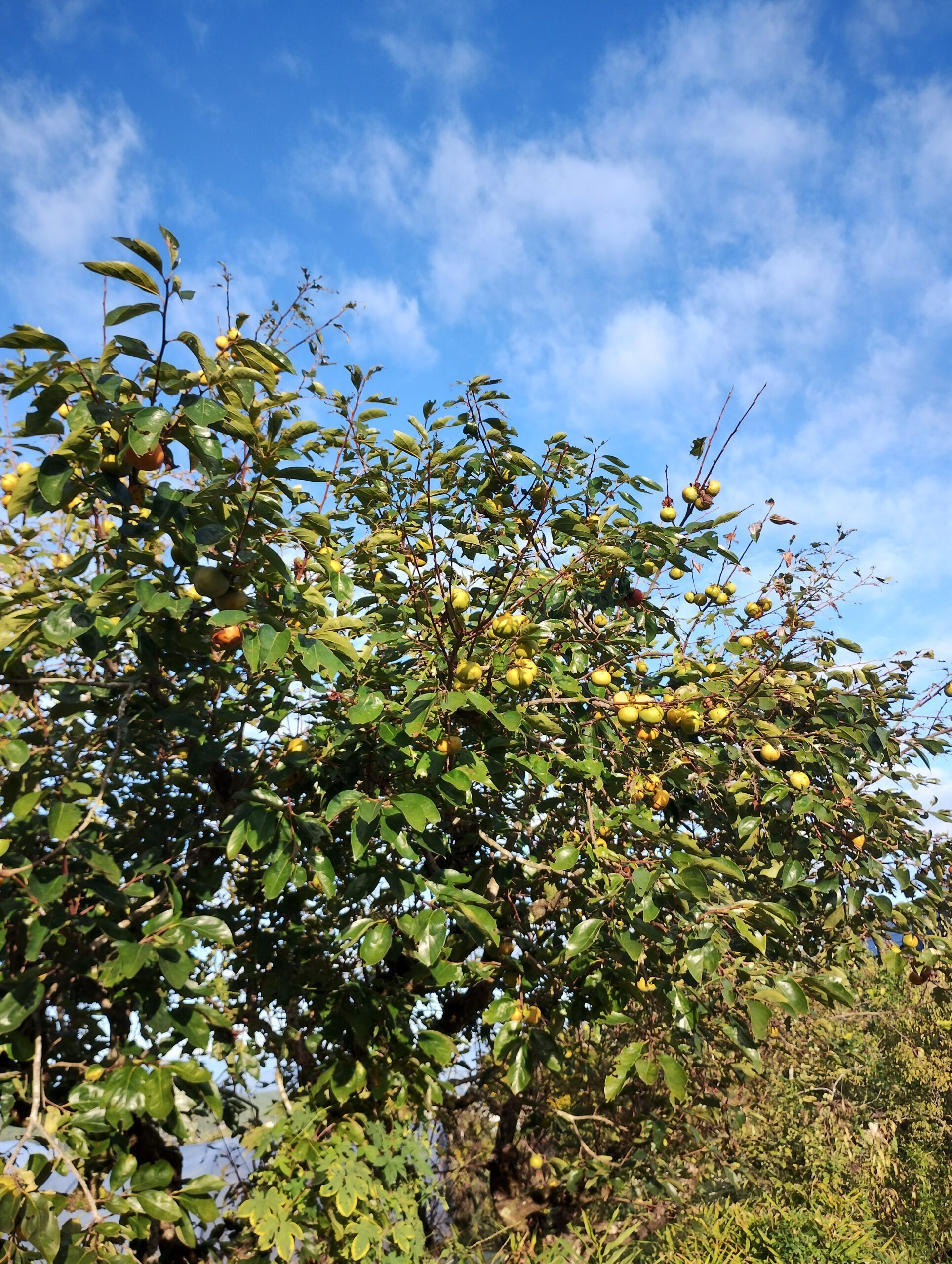 引っ越しして、初めての年は、400個以上の甘柿が生りました。3人家族では、柿は食べきれません。友人を柿狩りに誘い、マイ買い物かごを持参して遊びに来てもらったり、職場の同僚たちにお裾分けをしたり、柿の木がない子供の友人宅にもお裾分けしたりしていました。売るほどあるとはこんな状態ですね。
