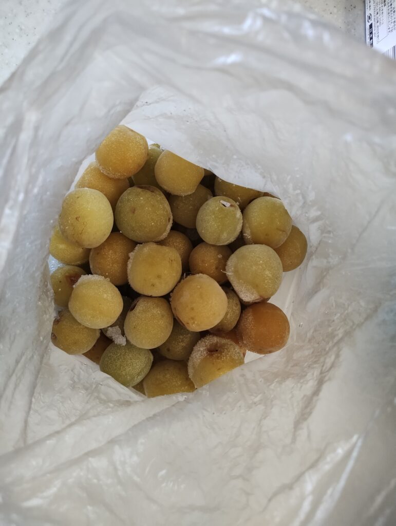 我が家の庭の梅の木や、職場(山の中)の梅の木から多めに実が採れたときは、青梅と完熟梅を冷凍保存しておきます。6月生の梅から作った梅シロップが切れると、今度は冷凍保存しておいた梅をシロップやジャムづくりに仕込みます。