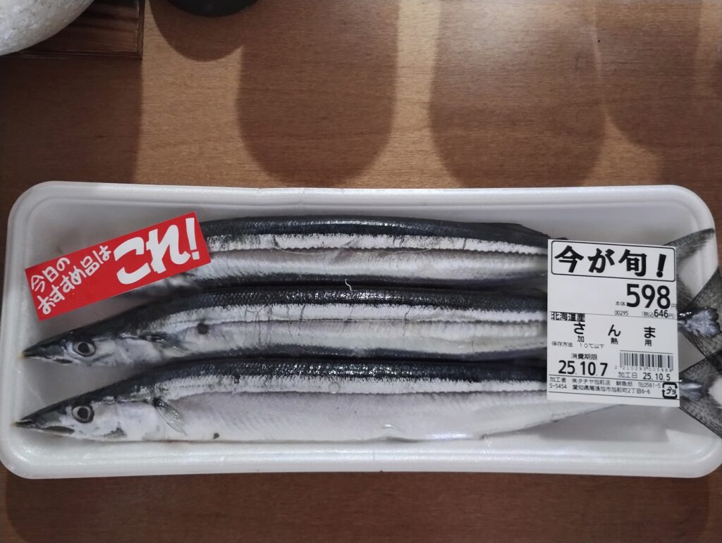 今年は、さんまが脂がのって安い。愛知県のスーパーで特売で迷わず購入しました。