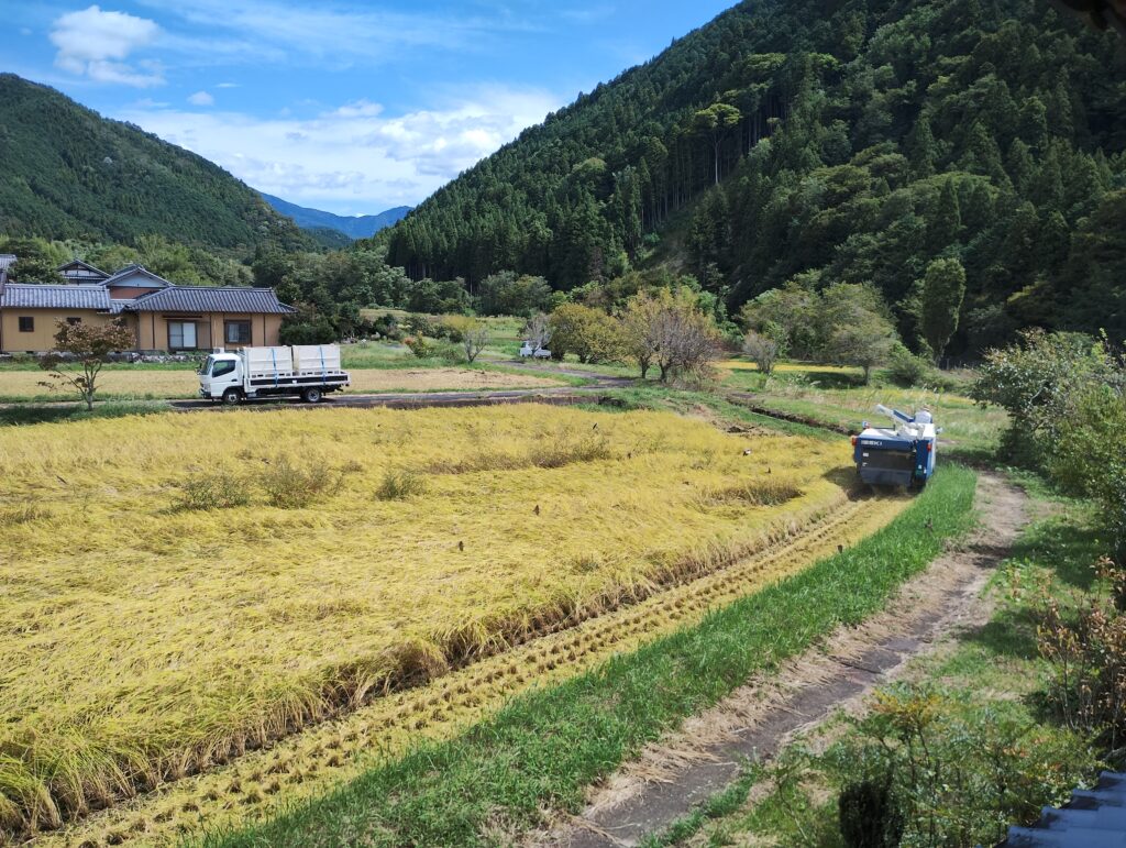 地域の稲刈り進んでいます。そしてツバメも飛び回ります。